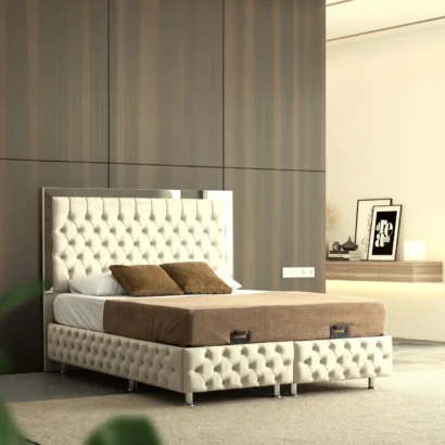 Zarafet ve konforun buluştuğu özel tasarım baza, başlık ve karyola modellerimizle yatak odanızda lüksü hissedin.