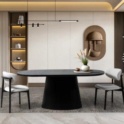 Modern çizgileriyle dikkat çeken bu masa, sağlam gövdesi ve zarif detaylarıyla evinizin en özel alanlarına şıklık kazandırır.